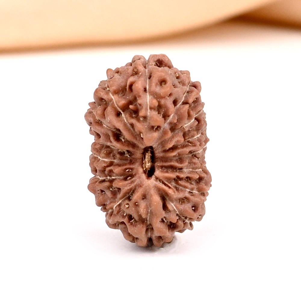 The 15 Mukhi Rudraksha embodies Pashupatinath, a five-faced form of Shiva symbolizing the divine roles of creation, preservation, destruction, illusion, and liberation. This Rudraksha opens the wearer to trust and fulfills heartfelt desires. It frees one from expectations from outside people and situations and instills the ability to forgive, forego, and detach. It heals emotional wounds, balances the heart chakra, and opens the path to higher consciousness. By awakening unconditional love and trust, it strengthens relationships. According to the Katyayani Tantra, wearing the 15 Mukhi Rudraksha helps transcend worldly attachments, enhancing focus on knowledge, self-awareness, and spiritual growth. It also supports heart health, alleviates recurring fevers, and relieves allergies.