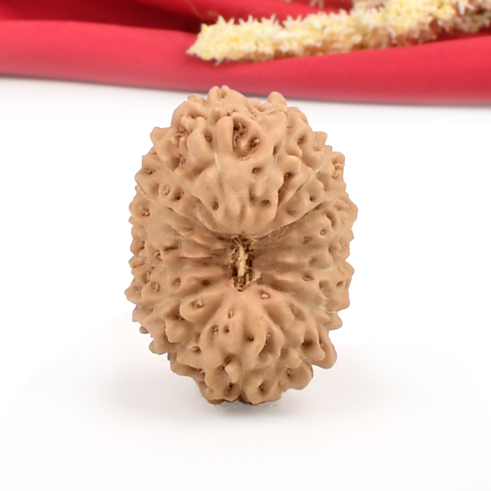 The 15 Mukhi Rudraksha embodies Pashupatinath, a five-faced form of Shiva symbolizing the divine roles of creation, preservation, destruction, illusion, and liberation. This Rudraksha opens the wearer to trust and fulfills heartfelt desires. It frees one from expectations from outside people and situations and instills the ability to forgive, forego, and detach. It heals emotional wounds, balances the heart chakra, and opens the path to higher consciousness. By awakening unconditional love and trust, it strengthens relationships. According to the Katyayani Tantra, wearing the 15 Mukhi Rudraksha helps transcend worldly attachments, enhancing focus on knowledge, self-awareness, and spiritual growth. It also supports heart health, alleviates recurring fevers, and relieves allergies.