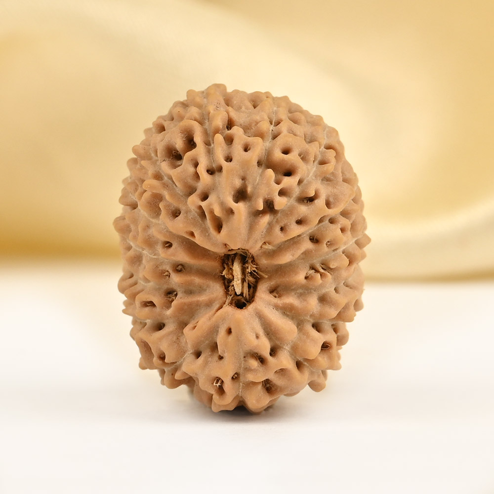 The 15 Mukhi Rudraksha embodies Pashupatinath, a five-faced form of Shiva symbolizing the divine roles of creation, preservation, destruction, illusion, and liberation. This Rudraksha opens the wearer to trust and fulfills heartfelt desires. It frees one from expectations from outside people and situations and instills the ability to forgive, forego, and detach. It heals emotional wounds, balances the heart chakra, and opens the path to higher consciousness. By awakening unconditional love and trust, it strengthens relationships. According to the Katyayani Tantra, wearing the 15 Mukhi Rudraksha helps transcend worldly attachments, enhancing focus on knowledge, self-awareness, and spiritual growth. It also supports heart health, alleviates recurring fevers, and relieves allergies.