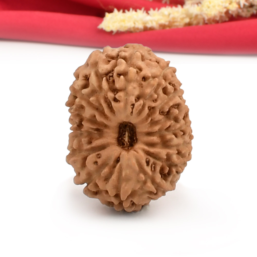 The 15 Mukhi Rudraksha embodies Pashupatinath, a five-faced form of Shiva symbolizing the divine roles of creation, preservation, destruction, illusion, and liberation. This Rudraksha opens the wearer to trust and fulfills heartfelt desires. It frees one from expectations from outside people and situations and instills the ability to forgive, forego, and detach. It heals emotional wounds, balances the heart chakra, and opens the path to higher consciousness. By awakening unconditional love and trust, it strengthens relationships. According to the Katyayani Tantra, wearing the 15 Mukhi Rudraksha helps transcend worldly attachments, enhancing focus on knowledge, self-awareness, and spiritual growth. It also supports heart health, alleviates recurring fevers, and relieves allergies.