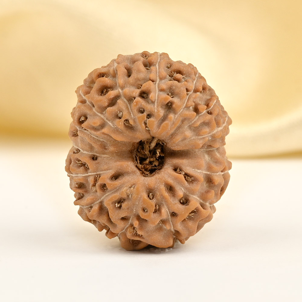 The 15 Mukhi Rudraksha embodies Pashupatinath, a five-faced form of Siva symbolizing the divine roles of creation, preservation, destruction, illusion, and liberation. This Rudraksha opens the wearer to trust and fulfills heartfelt desires. It frees one from expectations from outside people and situations and instills the ability to forgive, forego, and detach. It heals emotional wounds, balances the heart chakra, and opens the path to higher consciousness. By awakening unconditional love and trust, it strengthens relationships. According to the Katyayani Tantra, wearing the 15 Mukhi Rudraksha helps transcend worldly attachments, enhancing focus on knowledge, self-awareness, and spiritual growth. It also supports heart health, alleviates recurring fevers, and relieves allergies.