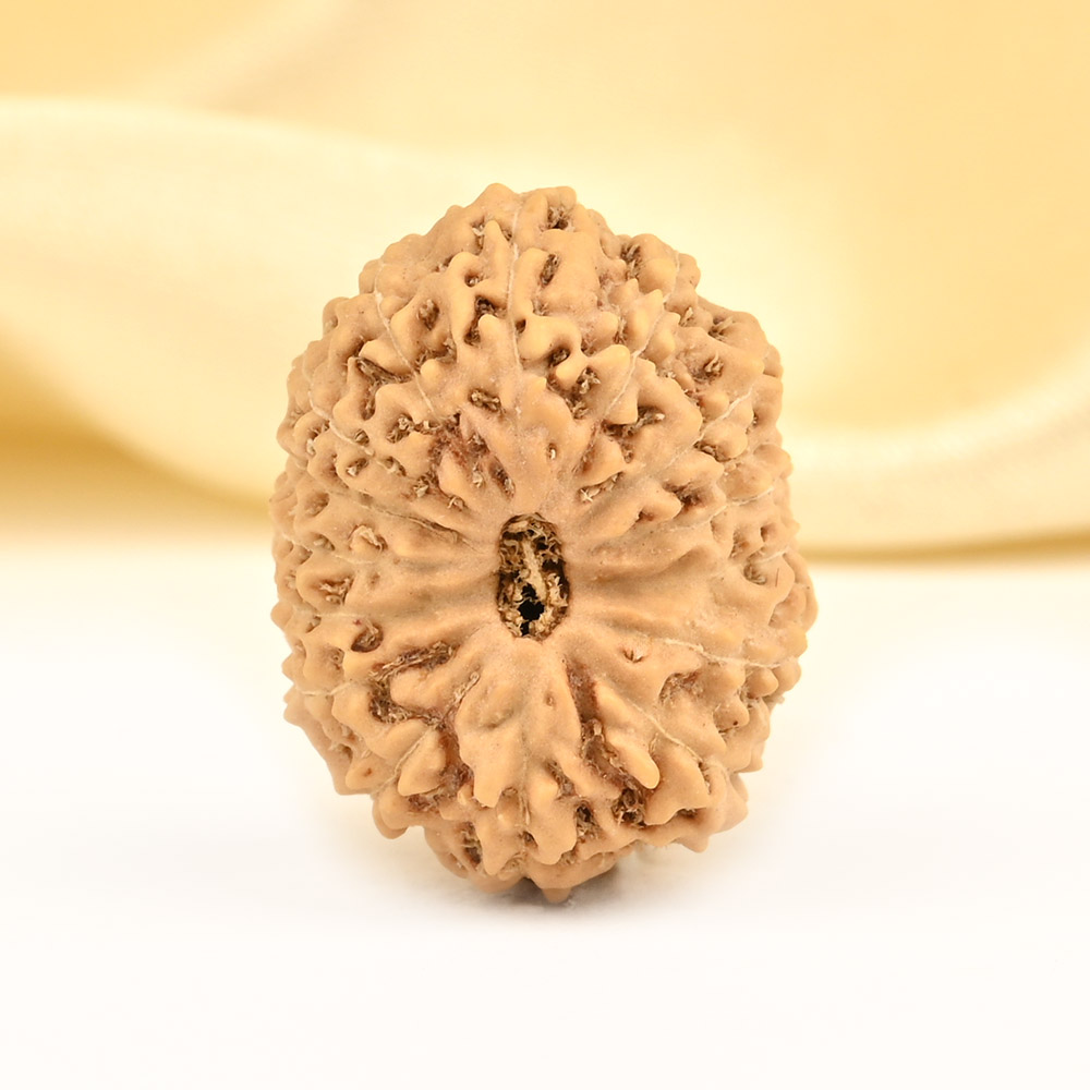 The 15 Mukhi Rudraksha embodies Pashupatinath, a five-faced form of Siva symbolizing the divine roles of creation, preservation, destruction, illusion, and liberation. This Rudraksha opens the wearer to trust and fulfills heartfelt desires. It frees one from expectations from outside people and situations and instills the ability to forgive, forego, and detach. It heals emotional wounds, balances the heart chakra, and opens the path to higher consciousness. By awakening unconditional love and trust, it strengthens relationships. According to the Katyayani Tantra, wearing the 15 Mukhi Rudraksha helps transcend worldly attachments, enhancing focus on knowledge, self-awareness, and spiritual growth. It also supports heart health, alleviates recurring fevers, and relieves allergies.