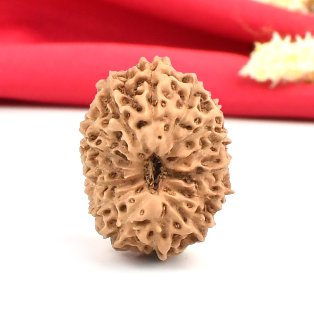 The 15 Mukhi Rudraksha embodies Pashupatinath, a five-faced form of Siva symbolizing the divine roles of creation, preservation, destruction, illusion, and liberation. This Rudraksha opens the wearer to trust and fulfills heartfelt desires. It frees one from expectations from outside people and situations and instills the ability to forgive, forego, and detach. It heals emotional wounds, balances the heart chakra, and opens the path to higher consciousness. By awakening unconditional love and trust, it strengthens relationships. According to the Katyayani Tantra, wearing the 15 Mukhi Rudraksha helps transcend worldly attachments, enhancing focus on knowledge, self-awareness, and spiritual growth. It also supports heart health, alleviates recurring fevers, and relieves allergies.