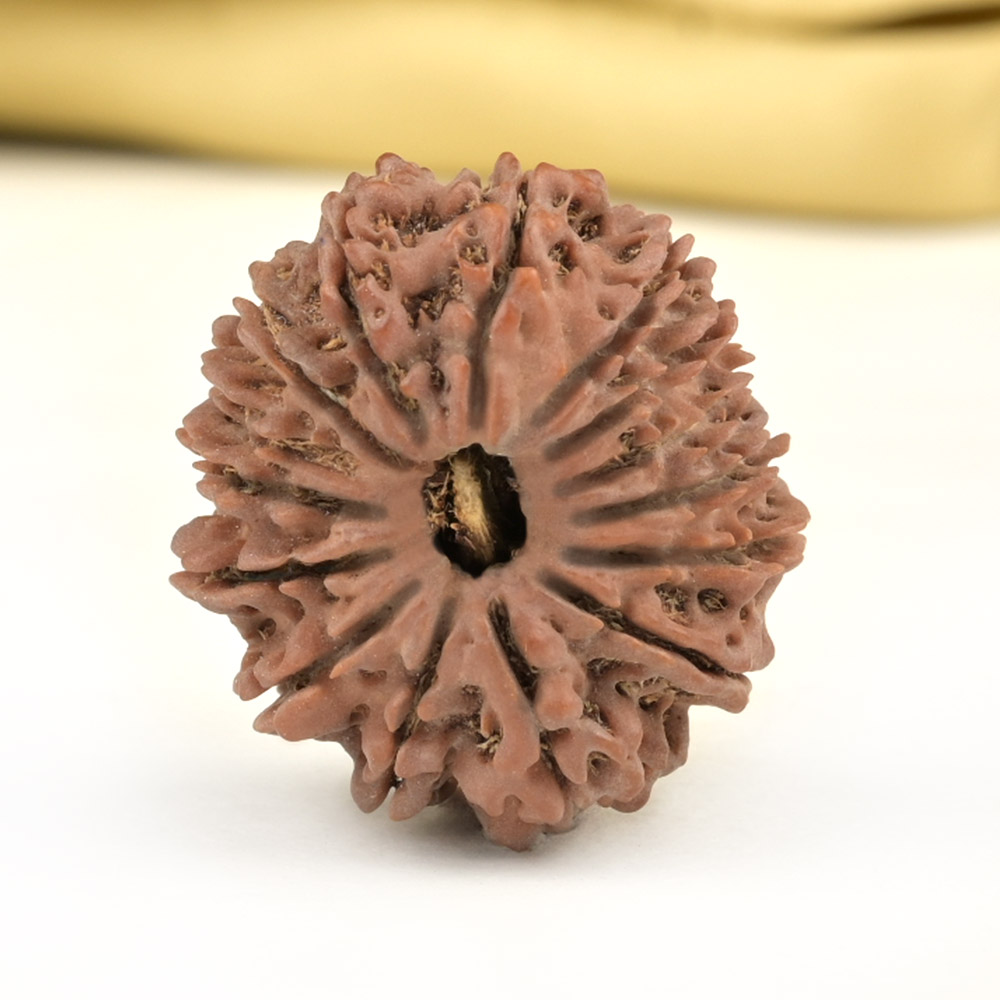 The 15 Mukhi Rudraksha embodies Pashupatinath, a five-faced form of Shiva symbolizing the divine roles of creation, preservation, destruction, illusion, and liberation. This Rudraksha opens the wearer to trust and fulfills heartfelt desires. It frees one from expectations from outside people and situations and instills the ability to forgive, forego, and detach. It heals emotional wounds, balances the heart chakra, and opens the path to higher consciousness. By awakening unconditional love and trust, it strengthens relationships. According to the Katyayani Tantra, wearing the 15 Mukhi Rudraksha helps transcend worldly attachments, enhancing focus on knowledge, self-awareness, and spiritual growth. It also supports heart health, alleviates recurring fevers, and relieves allergies.