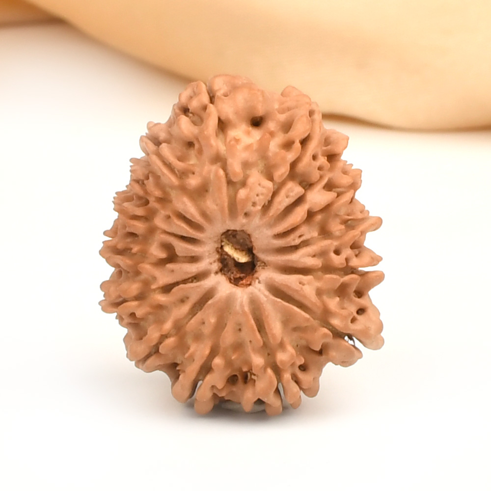 The 15 Mukhi Rudraksha embodies Pashupatinath, a five-faced form of Shiva symbolizing the divine roles of creation, preservation, destruction, illusion, and liberation. This Rudraksha opens the wearer to trust and fulfills heartfelt desires. It frees one from expectations from outside people and situations and instills the ability to forgive, forego, and detach. It heals emotional wounds, balances the heart chakra, and opens the path to higher consciousness. By awakening unconditional love and trust, it strengthens relationships. According to the Katyayani Tantra, wearing the 15 Mukhi Rudraksha helps transcend worldly attachments, enhancing focus on knowledge, self-awareness, and spiritual growth. It also supports heart health, alleviates recurring fevers, and relieves allergies.
