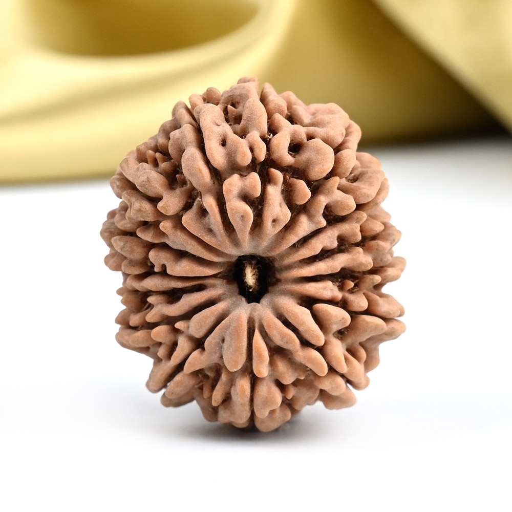 The 15 Mukhi Rudraksha embodies Pashupatinath, a five-faced form of Shiva symbolizing the divine roles of creation, preservation, destruction, illusion, and liberation. This Rudraksha opens the wearer to trust and fulfills heartfelt desires. It frees one from expectations from outside people and situations and instills the ability to forgive, forego, and detach. It heals emotional wounds, balances the heart chakra, and opens the path to higher consciousness. By awakening unconditional love and trust, it strengthens relationships. According to the Katyayani Tantra, wearing the 15 Mukhi Rudraksha helps transcend worldly attachments, enhancing focus on knowledge, self-awareness, and spiritual growth. It also supports heart health, alleviates recurring fevers, and relieves allergies.