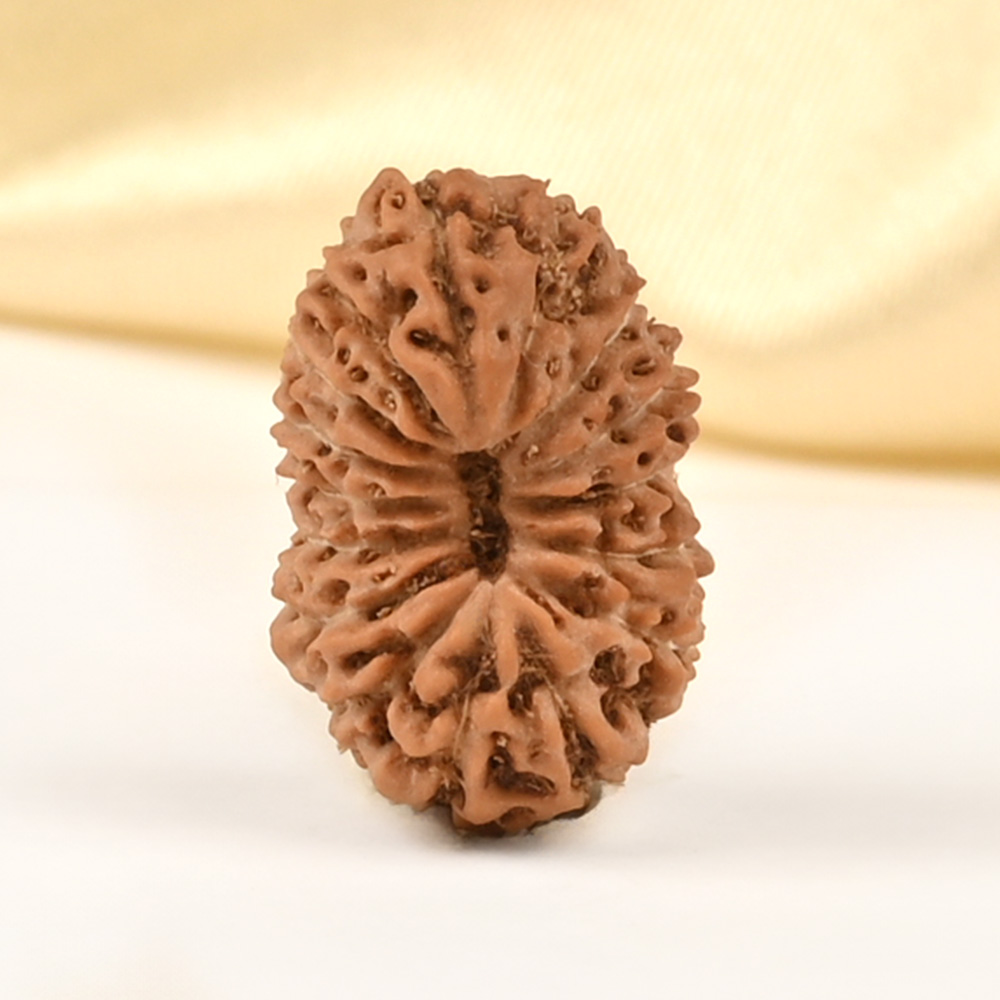 The 16 Mukhi Rudraksha embodies Mahamrityunjaya Shiva, who represents the eternal aspect of the self, transcending the cycles of life and death and symbolizing immortality and transcendence. The wearer is blessed with good health, protection, mental fortitude, and resilience, and is guided towards realizing their full potential. It eliminates fears, phobias, depression, and negative thinking, while aiding in resolving unlawful disputes and court cases in one’s favor. It also gives the wearer the strength to let go of what no longer serves the present moment, alleviating the burden of accumulated stress from clinging. According to the Katyayani Tantra, this divine Rudraksha safeguards against various diseases, including chronic and fatal ones. The Mahamrityunjaya mantra is recited during times of illness to protect against untimely death. The healing properties of this Rudraksha support curing low back pain, kidney, bladder, and large intestine ailments.