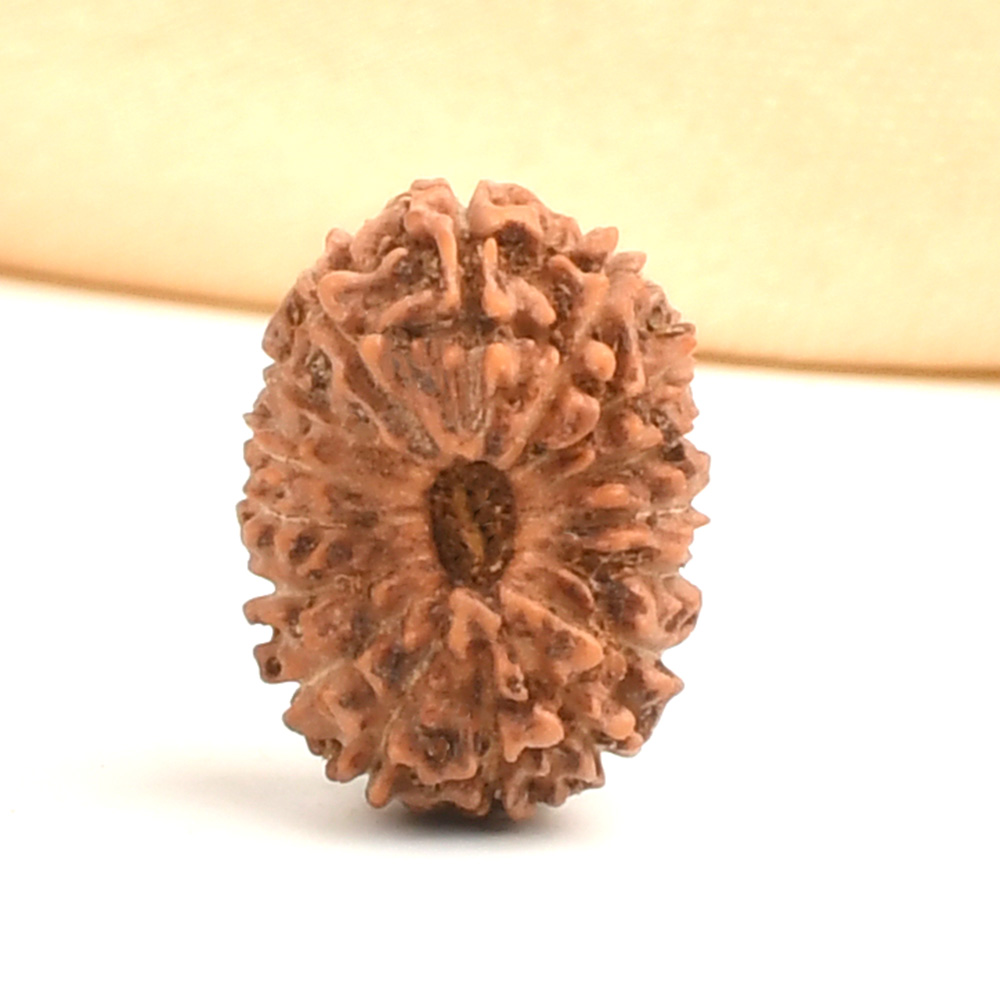 The 16 Mukhi Rudraksha embodies Mahamrityunjaya Shiva, who represents the eternal aspect of the self, transcending the cycles of life and death and symbolizing immortality and transcendence. The wearer is blessed with good health, protection, mental fortitude, and resilience, and is guided towards realizing their full potential. It eliminates fears, phobias, depression, and negative thinking, while aiding in resolving unlawful disputes and court cases in one’s favor. It also gives the wearer the strength to let go of what no longer serves the present moment, alleviating the burden of accumulated stress from clinging. According to the Katyayani Tantra, this divine Rudraksha safeguards against various diseases, including chronic and fatal ones. The Mahamrityunjaya mantra is recited during times of illness to protect against untimely death. The healing properties of this Rudraksha support curing low back pain, kidney, bladder, and large intestine ailments.