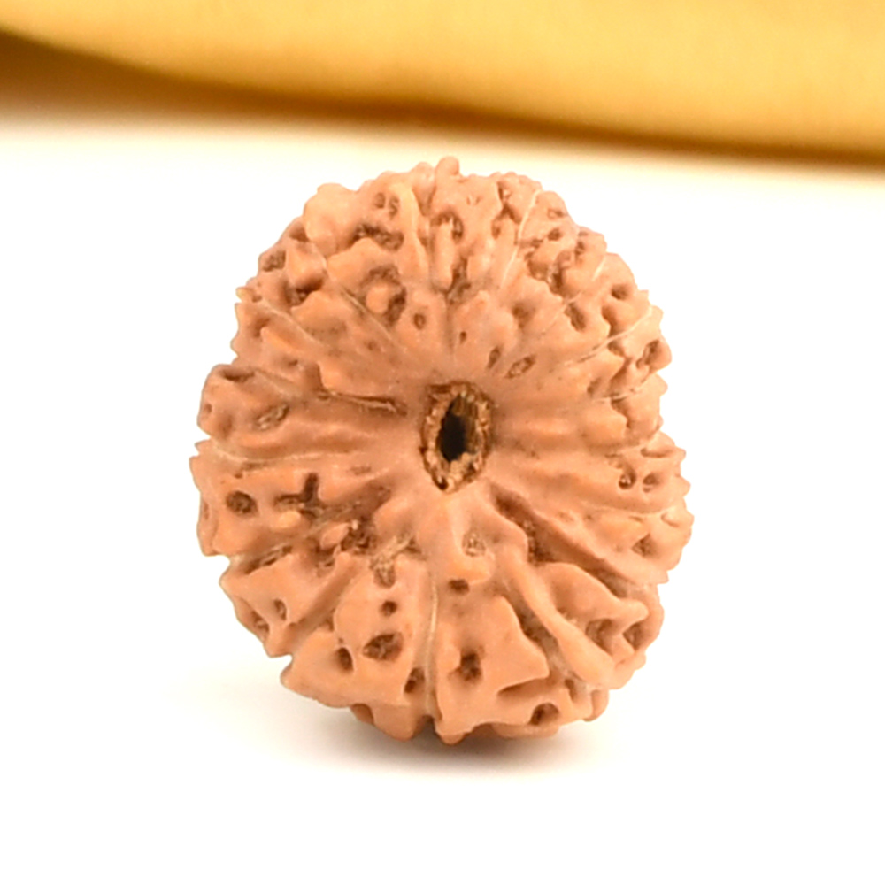 The 16 Mukhi Rudraksha embodies Mahamrityunjaya Shiva, who represents the eternal aspect of the self, transcending the cycles of life and death and symbolizing immortality and transcendence. The wearer is blessed with good health, protection, mental fortitude, and resilience, and is guided towards realizing their full potential. It eliminates fears, phobias, depression, and negative thinking, while aiding in resolving unlawful disputes and court cases in one’s favor. It also gives the wearer the strength to let go of what no longer serves the present moment, alleviating the burden of accumulated stress from clinging. According to the Katyayani Tantra, this divine Rudraksha safeguards against various diseases, including chronic and fatal ones. The Mahamrityunjaya mantra is recited during times of illness to protect against untimely death. The healing properties of this Rudraksha support curing low back pain, kidney, bladder, and large intestine ailments.