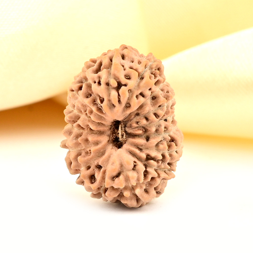 The 16 Mukhi Rudraksha embodies Mahamrityunjaya Shiva, who represents the eternal aspect of the self, transcending the cycles of life and death and symbolizing immortality and transcendence. The wearer is blessed with good health, protection, mental fortitude, and resilience, and is guided towards realizing their full potential. It eliminates fears, phobias, depression, and negative thinking, while aiding in resolving unlawful disputes and court cases in one’s favor. It also gives the wearer the strength to let go of what no longer serves the present moment, alleviating the burden of accumulated stress from clinging. According to the Katyayani Tantra, this divine Rudraksha safeguards against various diseases, including chronic and fatal ones. The Mahamrityunjaya mantra is recited during times of illness to protect against untimely death. The healing properties of this Rudraksha support curing low back pain, kidney, bladder, and large intestine ailments.