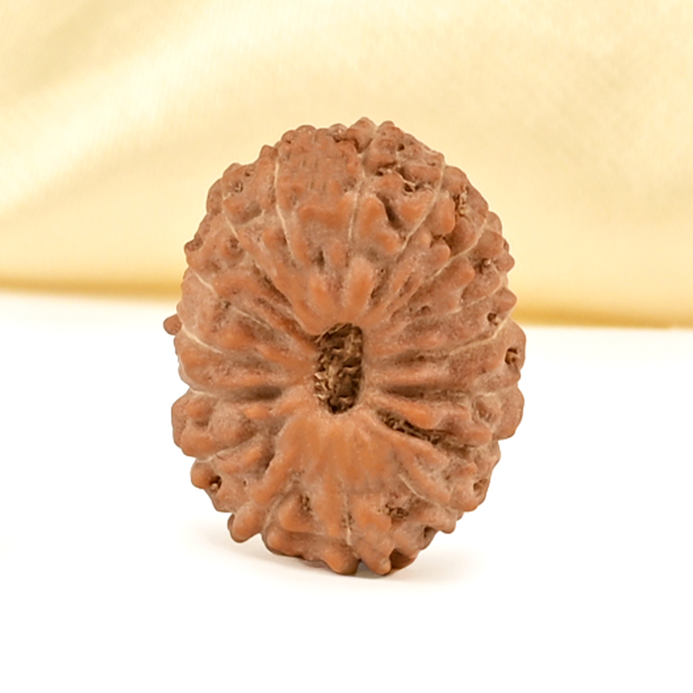 The 16 Mukhi Rudraksha embodies Mahamrityunjaya Shiva, who represents the eternal aspect of the self, transcending the cycles of life and death and symbolizing immortality and transcendence. The wearer is blessed with good health, protection, mental fortitude, and resilience, and is guided towards realizing their full potential. It eliminates fears, phobias, depression, and negative thinking, while aiding in resolving unlawful disputes and court cases in one’s favor. It also gives the wearer the strength to let go of what no longer serves the present moment, alleviating the burden of accumulated stress from clinging. According to the Katyayani Tantra, this divine Rudraksha safeguards against various diseases, including chronic and fatal ones. The Mahamrityunjaya mantra is recited during times of illness to protect against untimely death. The healing properties of this Rudraksha support curing low back pain, kidney, bladder, and large intestine ailments.