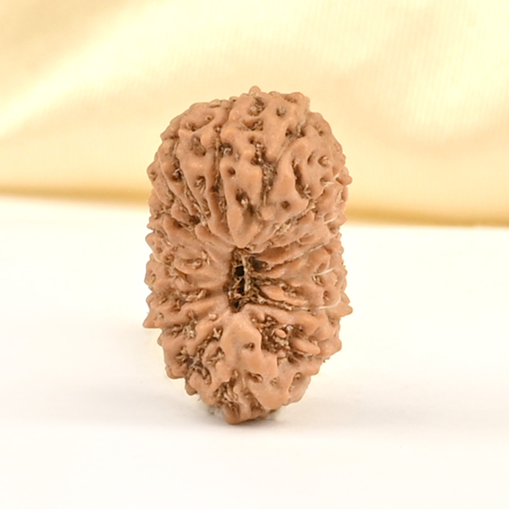 The 16 Mukhi Rudraksha embodies Mahamrityunjaya Shiva, who represents the eternal aspect of the self, transcending the cycles of life and death and symbolizing immortality and transcendence. The wearer is blessed with good health, protection, mental fortitude, and resilience, and is guided towards realizing their full potential. It eliminates fears, phobias, depression, and negative thinking, while aiding in resolving unlawful disputes and court cases in one’s favor. It also gives the wearer the strength to let go of what no longer serves the present moment, alleviating the burden of accumulated stress from clinging. According to the Katyayani Tantra, this divine Rudraksha safeguards against various diseases, including chronic and fatal ones. The Mahamrityunjaya mantra is recited during times of illness to protect against untimely death. The healing properties of this Rudraksha support curing low back pain, kidney, bladder, and large intestine ailments.