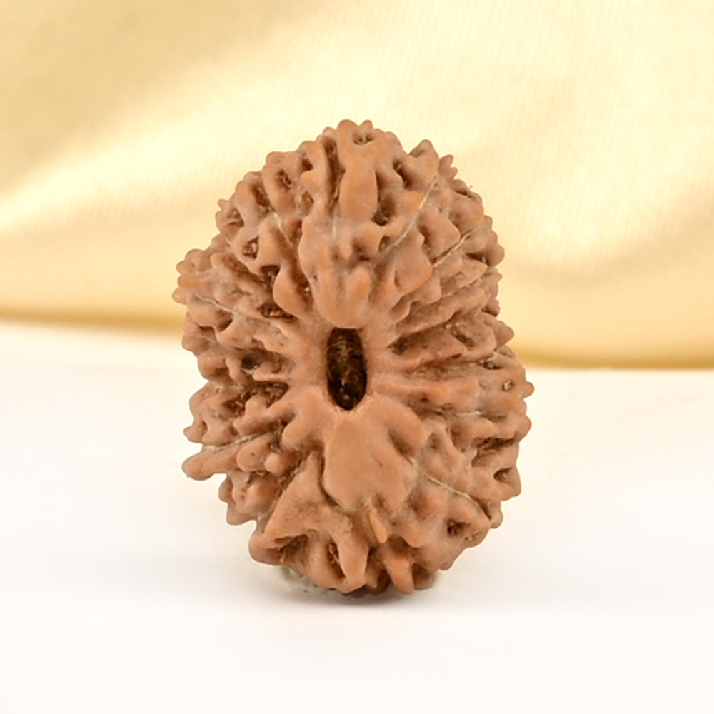 The 16 Mukhi Rudraksha embodies Mahamrityunjaya Shiva, who represents the eternal aspect of the self, transcending the cycles of life and death and symbolizing immortality and transcendence. The wearer is blessed with good health, protection, mental fortitude, and resilience, and is guided towards realizing their full potential. It eliminates fears, phobias, depression, and negative thinking, while aiding in resolving unlawful disputes and court cases in one’s favor. It also gives the wearer the strength to let go of what no longer serves the present moment, alleviating the burden of accumulated stress from clinging. According to the Katyayani Tantra, this divine Rudraksha safeguards against various diseases, including chronic and fatal ones. The Mahamrityunjaya mantra is recited during times of illness to protect against untimely death. The healing properties of this Rudraksha support curing low back pain, kidney, bladder, and large intestine ailments.