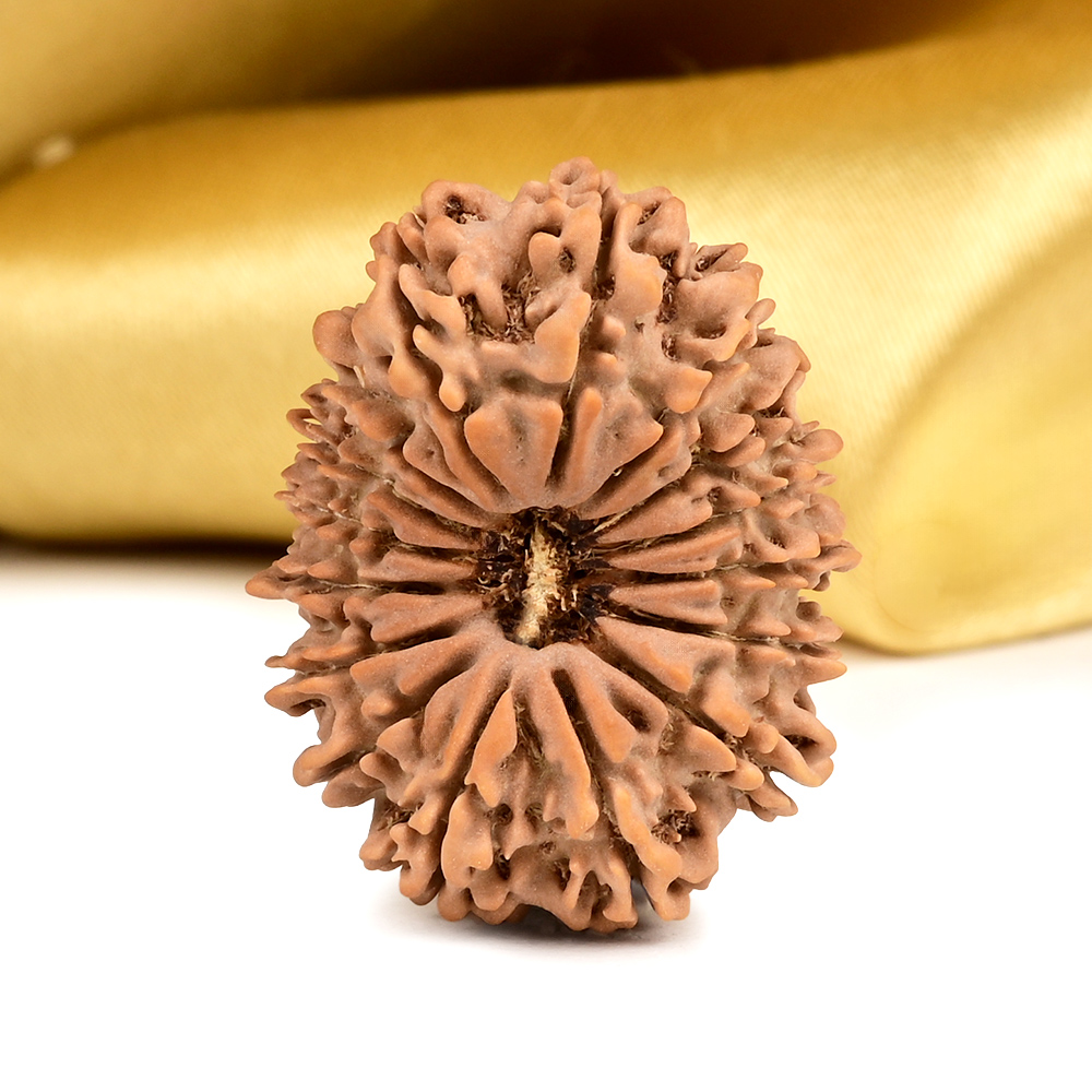 The 16 Mukhi Rudraksha embodies Mahamrityunjaya Shiva, who represents the eternal aspect of the self, transcending the cycles of life and death and symbolizing immortality and transcendence. The wearer is blessed with good health, protection, mental fortitude, and resilience, and is guided towards realizing their full potential. It eliminates fears, phobias, depression, and negative thinking, while aiding in resolving unlawful disputes and court cases in one’s favor. It also gives the wearer the strength to let go of what no longer serves the present moment, alleviating the burden of accumulated stress from clinging. According to the Katyayani Tantra, this divine Rudraksha safeguards against various diseases, including chronic and fatal ones. The Mahamrityunjaya mantra is recited during times of illness to protect against untimely death. The healing properties of this Rudraksha support curing low back pain, kidney, bladder, and large intestine ailments.