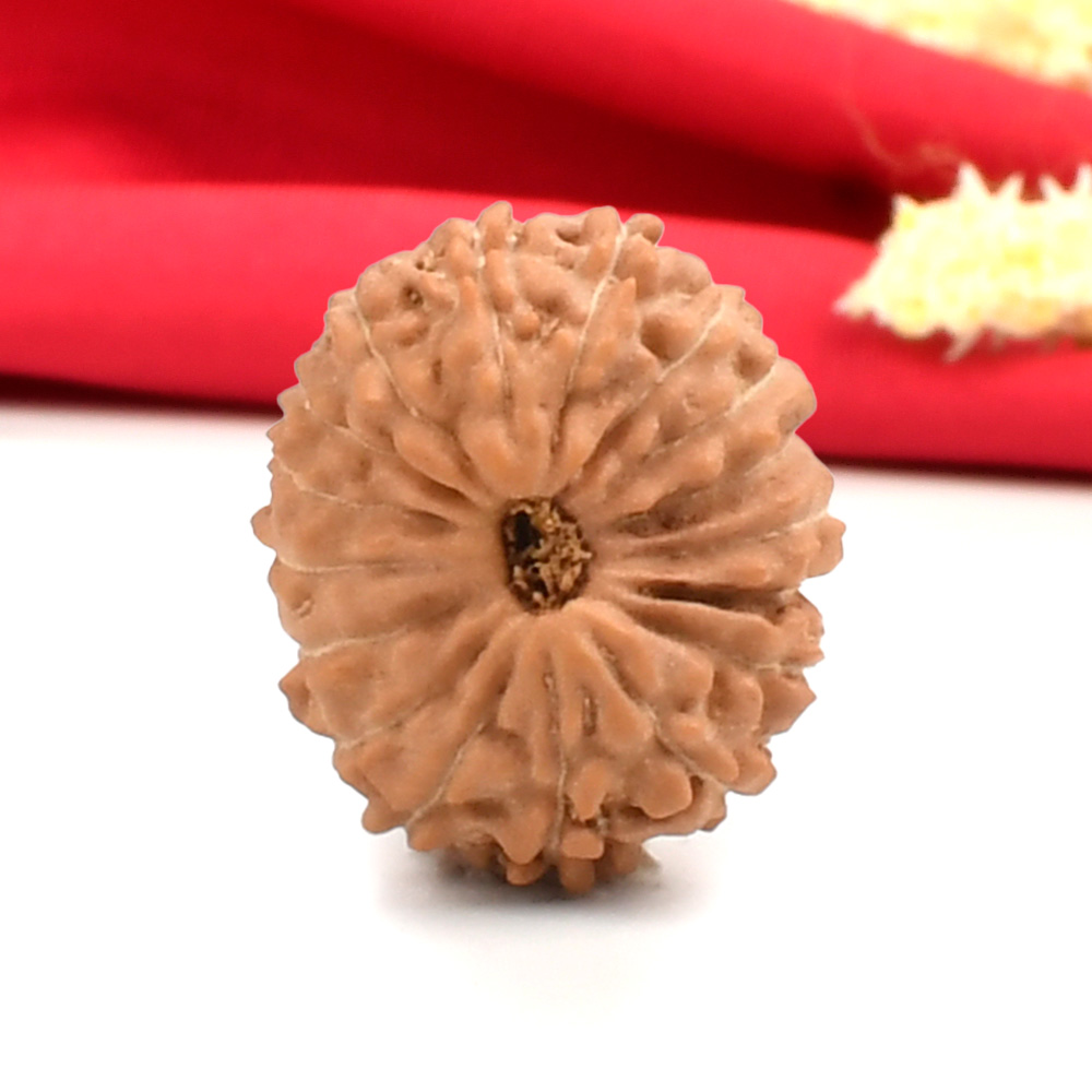 The 17 Mukhi Rudraksha symbolizes Katyayani Devi, the sixth form of Durga. Worshipping this goddess grants the wearer the four fruits of life: Dharma, Artha, Kama, and Moksha. This Rudraksha promotes transcendence over all boundaries, guiding the wearer to embrace non-duality in every aspect of life, including thoughts, actions, and spiritual awareness. On a psychic level, it enhances superior intuition, clairvoyance, telepathic abilities, self-control, intellectual identification, and creative intelligence. It is especially beneficial for project leaders, businessmen, political leaders, and anyone desiring career growth. According to the Katyayani Tantra, this Rudraksha blesses the wearer with immense power for wealth creation and divine magnetism. It helps fulfill desires related to finding a life partner, having progeny, and attracting desired outcomes through the power of command. It also clears illusions and ignorance, helping the wearer see reality and transform it with innate intelligence.