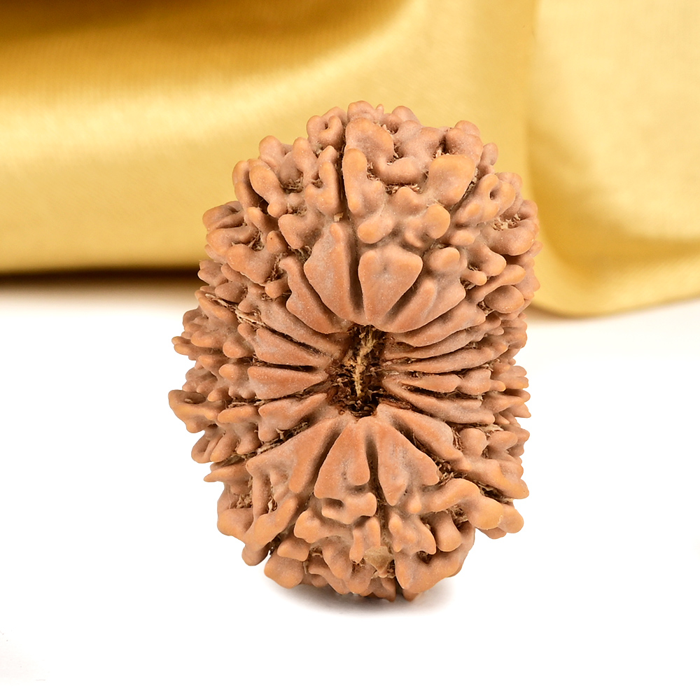 The 17 Mukhi Rudraksha symbolizes Katyayani Devi, the sixth form of Durga. Worshipping this goddess grants the wearer the four fruits of life: Dharma, Artha, Kama, and Moksha. This Rudraksha promotes transcendence over all boundaries, guiding the wearer to embrace non-duality in every aspect of life, including thoughts, actions, and spiritual awareness. On a psychic level, it enhances superior intuition, clairvoyance, telepathic abilities, self-control, intellectual identification, and creative intelligence. It is especially beneficial for project leaders, businessmen, political leaders, and anyone desiring career growth. According to the Katyayani Tantra, this Rudraksha blesses the wearer with immense power for wealth creation and divine magnetism. It helps fulfill desires related to finding a life partner, having progeny, and attracting desired outcomes through the power of command. It also clears illusions and ignorance, helping the wearer see reality and transform it with innate intelligence.