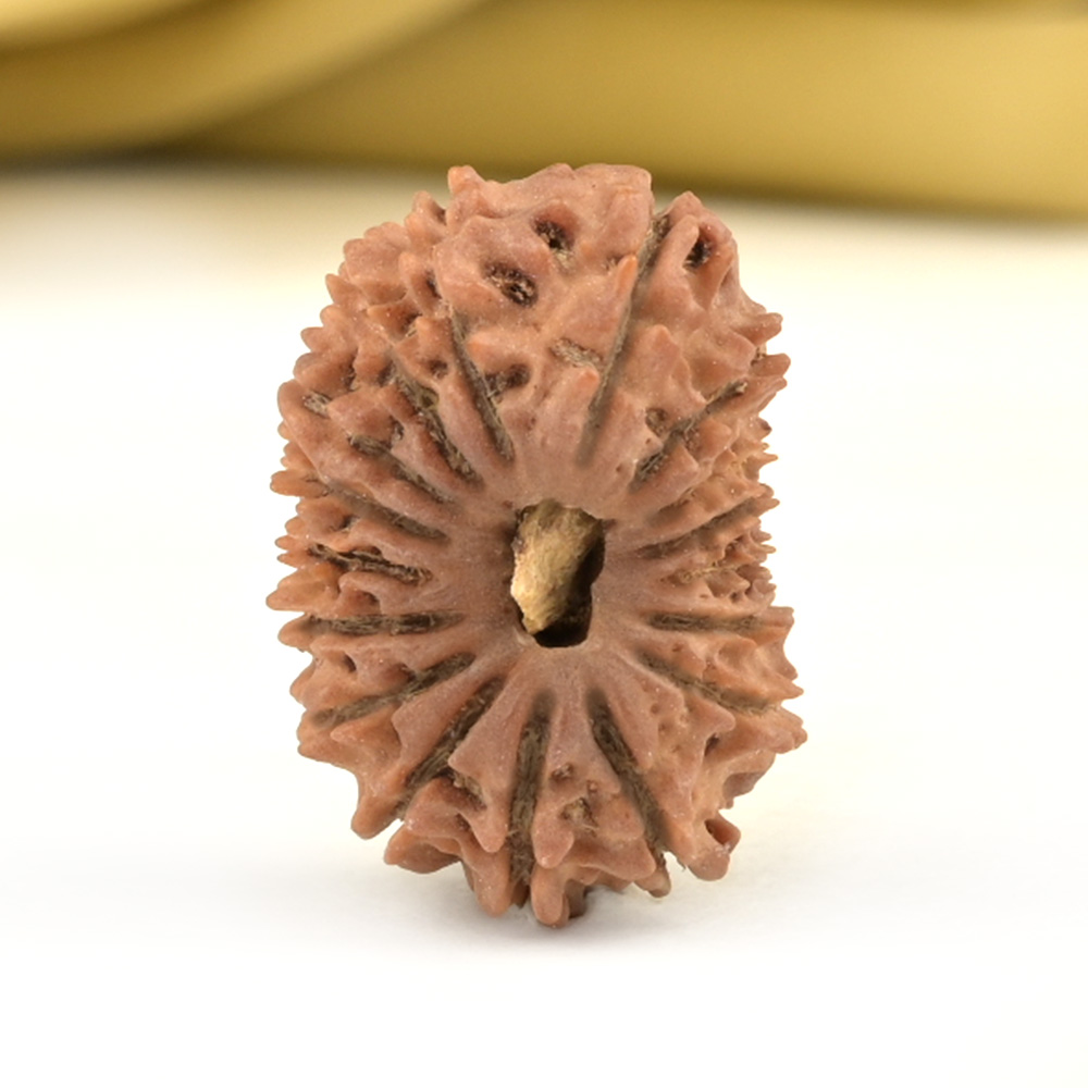 The 17 Mukhi Rudraksha symbolizes Katyayani Devi, the sixth form of Durga. Worshipping this goddess grants the wearer the four fruits of life: Dharma, Artha, Kama, and Moksha. This Rudraksha promotes transcendence over all boundaries, guiding the wearer to embrace non-duality in every aspect of life, including thoughts, actions, and spiritual awareness. On a psychic level, it enhances superior intuition, clairvoyance, telepathic abilities, self-control, intellectual identification, and creative intelligence. It is especially beneficial for project leaders, businessmen, political leaders, and anyone desiring career growth. According to the Katyayani Tantra, this Rudraksha blesses the wearer with immense power for wealth creation and divine magnetism. It helps fulfill desires related to finding a life partner, having progeny, and attracting desired outcomes through the power of command. It also clears illusions and ignorance, helping the wearer see reality and transform it with innate intelligence.