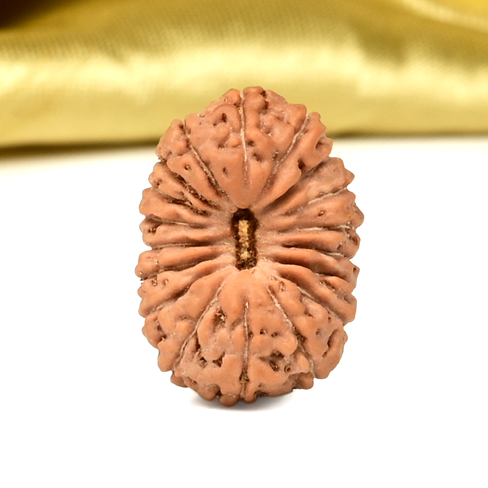The 18 Mukhi Rudraksha embodies Bhumi Devi, Mother Earth, the nurturer of all living beings. Bhumi Devi is a manifestation of Goddess Lakshmi and the consort of Bhagawan Vishnu. According to the Katyayani Tantra, wearing this Rudraksha blesses the wearer with support, property, land, balance, and abundance. This bead acts on the Muladhara (Root Chakra), bringing stability and security in one’s life. It helps bring profit from land deals, supports the accumulation of material assets, and bestows a healthy body structure along with virtues such as penance, patience, and stamina. It aids in grounding and centering oneself, removing mental barriers like fear of loss or lack. Therapeutically, it is beneficial for healing knee, leg, and bone pains.