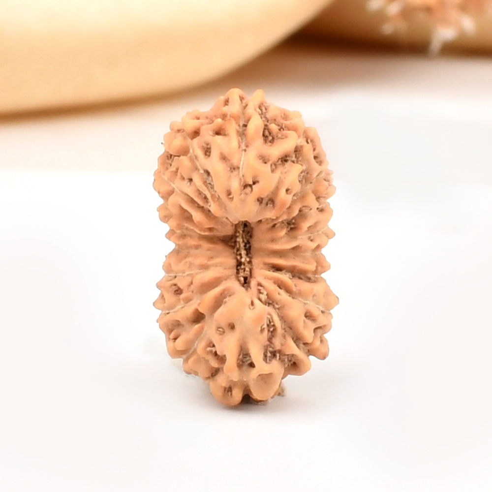 The 18 Mukhi Rudraksha embodies Bhumi Devi, Mother Earth, the nurturer of all living beings. Bhumi Devi is a manifestation of Goddess Lakshmi and the consort of Bhagawan Vishnu. According to the Katyayani Tantra, wearing this Rudraksha blesses the wearer with support, property, land, balance, and abundance. This bead acts on the Muladhara (Root Chakra), bringing stability and security in one’s life. It helps bring profit from land deals, supports the accumulation of material assets, and bestows a healthy body structure along with virtues such as penance, patience, and stamina. It aids in grounding and centering oneself, removing mental barriers like fear of loss or lack. Therapeutically, it is beneficial for healing knee, leg, and bone pains.