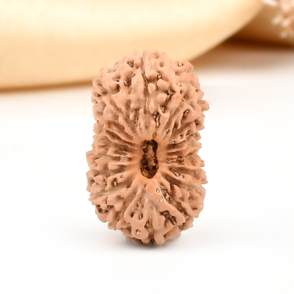 The 18 Mukhi Rudraksha embodies Bhumi Devi, Mother Earth, the nurturer of all living beings. Bhumi Devi is a manifestation of Goddess Lakshmi and the consort of Bhagawan Vishnu. According to the Katyayani Tantra, wearing this Rudraksha blesses the wearer with support, property, land, balance, and abundance. This bead acts on the Muladhara (Root Chakra), bringing stability and security in one’s life. It helps bring profit from land deals, supports the accumulation of material assets, and bestows a healthy body structure along with virtues such as penance, patience, and stamina. It aids in grounding and centering oneself, removing mental barriers like fear of loss or lack. Therapeutically, it is beneficial for healing knee, leg, and bone pains.