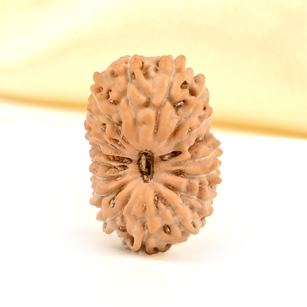The 18 Mukhi Rudraksha embodies Bhumi Devi, Mother Earth, the nurturer of all living beings. Bhumi Devi is a manifestation of Goddess Lakshmi and the consort of Bhagawan Vishnu. According to the Katyayani Tantra, wearing this Rudraksha blesses the wearer with support, property, land, balance, and abundance. This bead acts on the Muladhara (Root Chakra), bringing stability and security in one’s life. It helps bring profit from land deals, supports the accumulation of material assets, and bestows a healthy body structure along with virtues such as penance, patience, and stamina. It aids in grounding and centering oneself, removing mental barriers like fear of loss or lack. Therapeutically, it is beneficial for healing knee, leg, and bone pains.