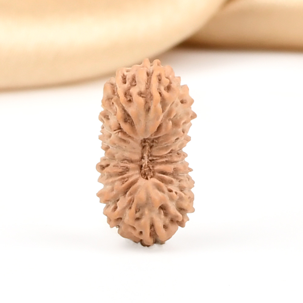 The 20 Mukhi Rudraksha embodies Bhagawan Brahma, the Creator of the Universe. It bestows blessings for the acquisition of divine knowledge in various realms such as creation, sciences, arts, and music. According to the Katyayani Purana, the wearer transforms into a creator, possessing vast knowledge and intellect and is endowed with great mental power to bring intentions to reality. This Rudraksha is worn by those aspiring to manifest projects for the betterment of humanity. The 20 Mukhi Rudraksha grants the power of creation, enabling the manifestation of projects that benefit humanity and bring prosperity and wealth. Therapeutically, wearing this Rudraksha alleviates anxiety.