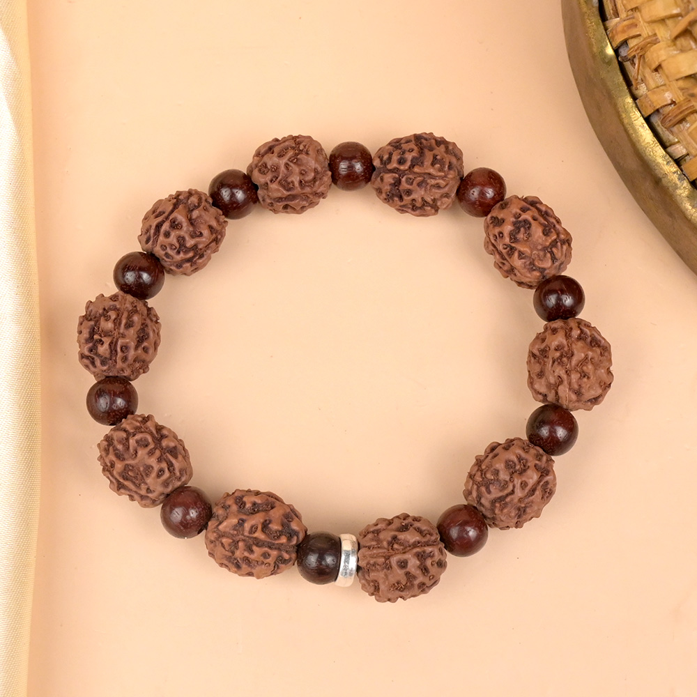 4 Mukhi Rudraksha governs intellect and clarity of expression, while Red Sandalwood supports calm focus and grounding energy. Wearing this bracelet sharpens concentration, stabilizes mental activity, and supports disciplined thinking with steady spiritual balance.
