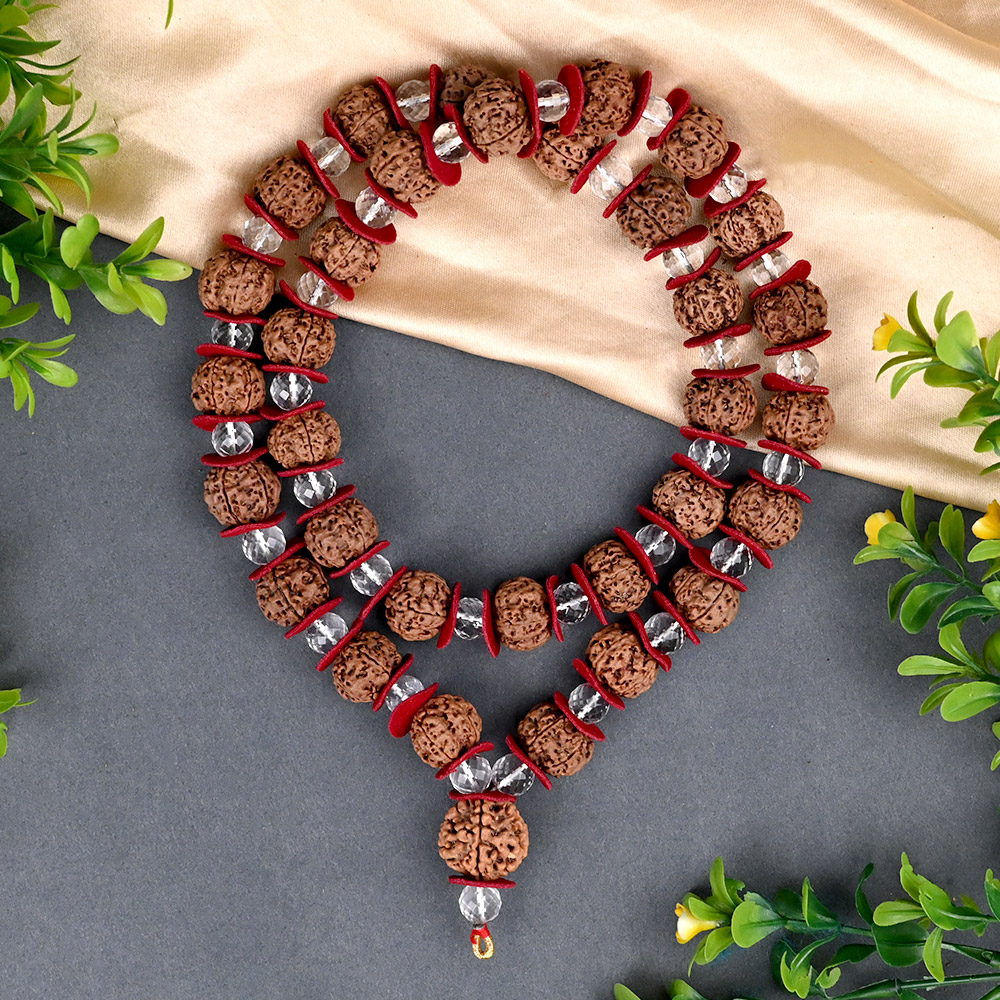 Designed for meditation, spiritual practices, or daily wear, this Kantha Mala beautifully integrates the grounding energy of Rudraksha with the amplifying clarity of Sphatik, making it a powerful tool for peace, focus, and spiritual advancement.