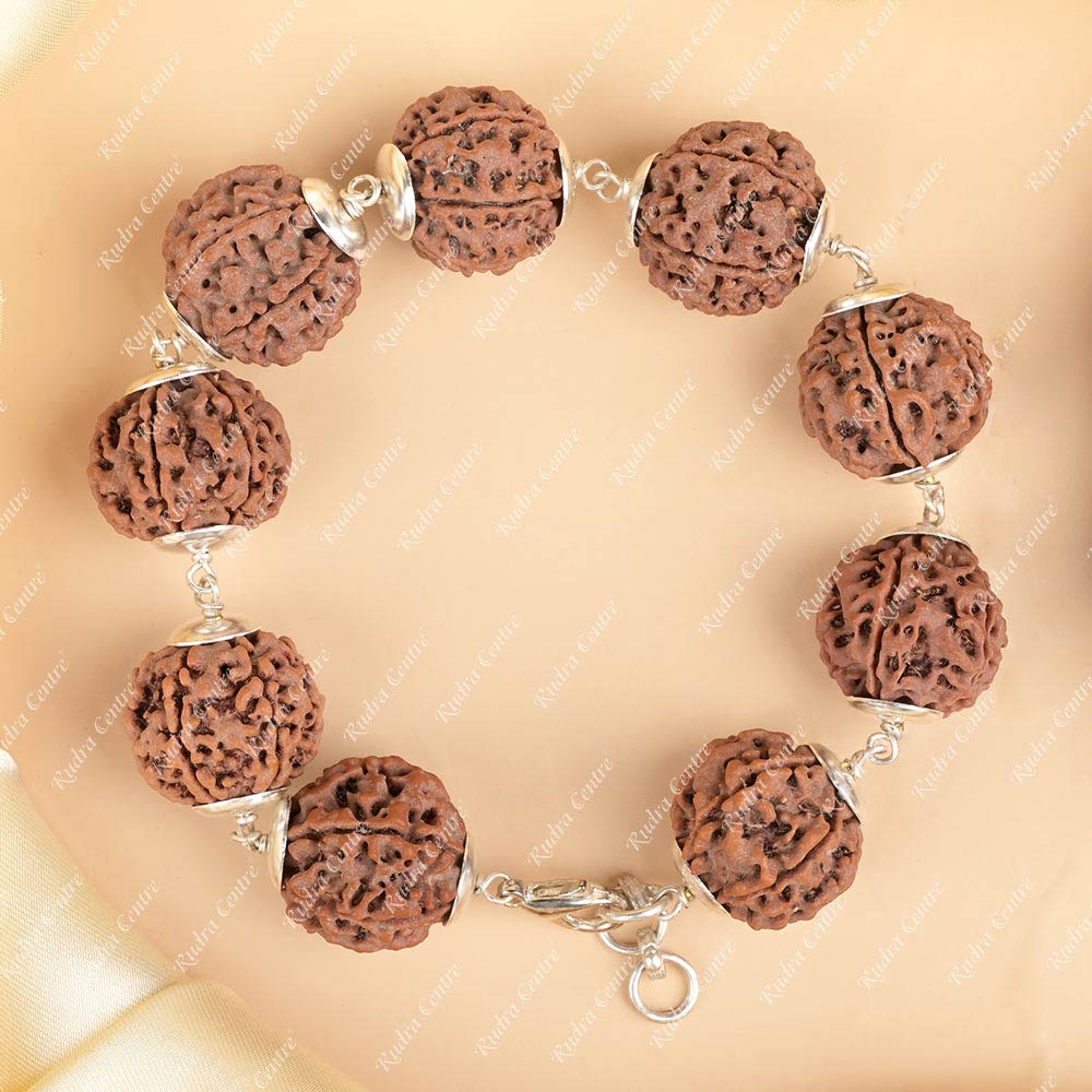 This 7 Mukhi Nepali Rudraksha 925 Silver Plain Caps Bracelet is crafted using authentic Nepali 7 Mukhi Rudraksha beads, each finished with 925 sterling silver plain caps. These caps offer a clean, minimal, and elegant aesthetic while significantly enhancing the bracelet's durability and energetic conductivity between the beads and the wearer.