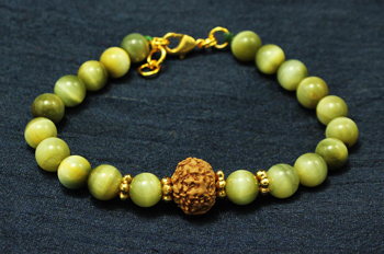 Bead size: 14 mm (Rudraksha) x 8 mm (Cats Eye)