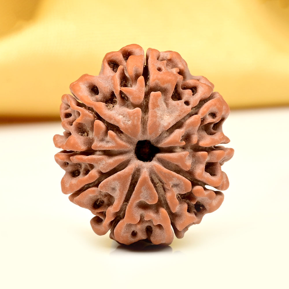 The 9 Mukhi Rudraksha is ruled by the Divine Mother Durga and blesses the wearer with lots of energy, power, dynamism, and fearlessness, which are essential for living a life of success. It bestows both Bhogha (worldly comforts and fulfillment of desires) and Moksha (liberation). This Rudraksha removes bad luck and opens the wearer to abundance in all aspects of life. It dispels fears, controls obsessive thoughts, and provides relief from depression, dizziness, and skin ailments.