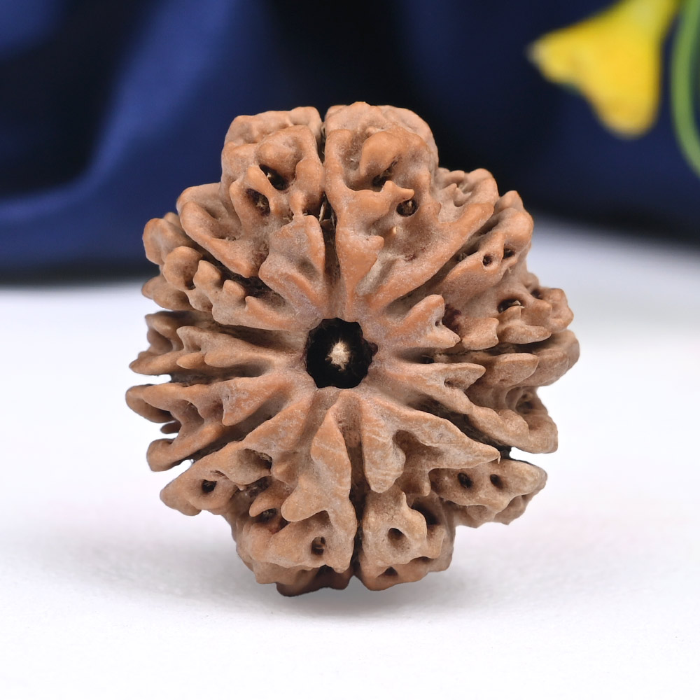 The 9 Mukhi Rudraksha is ruled by the Divine Mother Durga and blesses the wearer with lots of energy, power, dynamism, and fearlessness, which are essential for living a life of success. It bestows both Bhogha (worldly comforts and fulfillment of desires) and Moksha (liberation). This Rudraksha removes bad luck and opens the wearer to abundance in all aspects of life. It dispels fears, controls obsessive thoughts, and provides relief from depression, dizziness, and skin ailments.