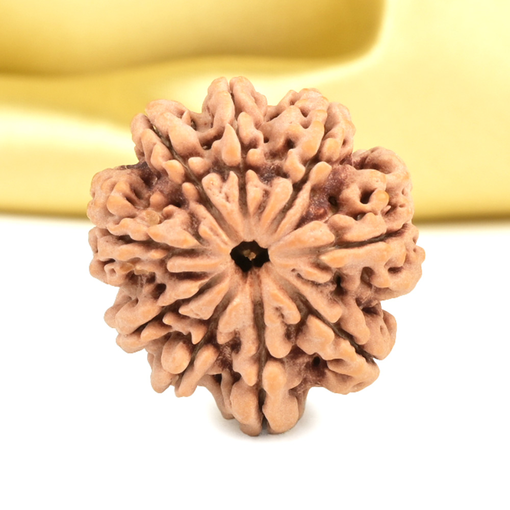 The 9 Mukhi Rudraksha is ruled by the Divine Mother Durga and blesses the wearer with lots of energy, power, dynamism, and fearlessness, which are essential for living a life of success. It bestows both Bhogha (worldly comforts and fulfillment of desires) and Moksha (liberation). This Rudraksha removes bad luck and opens the wearer to abundance in all aspects of life. It dispels fears, controls obsessive thoughts, and provides relief from depression, dizziness, and skin ailments.