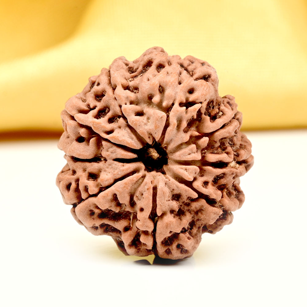 The 9 Mukhi Rudraksha is ruled by the Divine Mother Durga and blesses the wearer with lots of energy, power, dynamism, and fearlessness, which are essential for living a life of success. It bestows both Bhogha (worldly comforts and fulfillment of desires) and Moksha (liberation). This Rudraksha removes bad luck and opens the wearer to abundance in all aspects of life. It dispels fears, controls obsessive thoughts, and provides relief from depression, dizziness, and skin ailments.