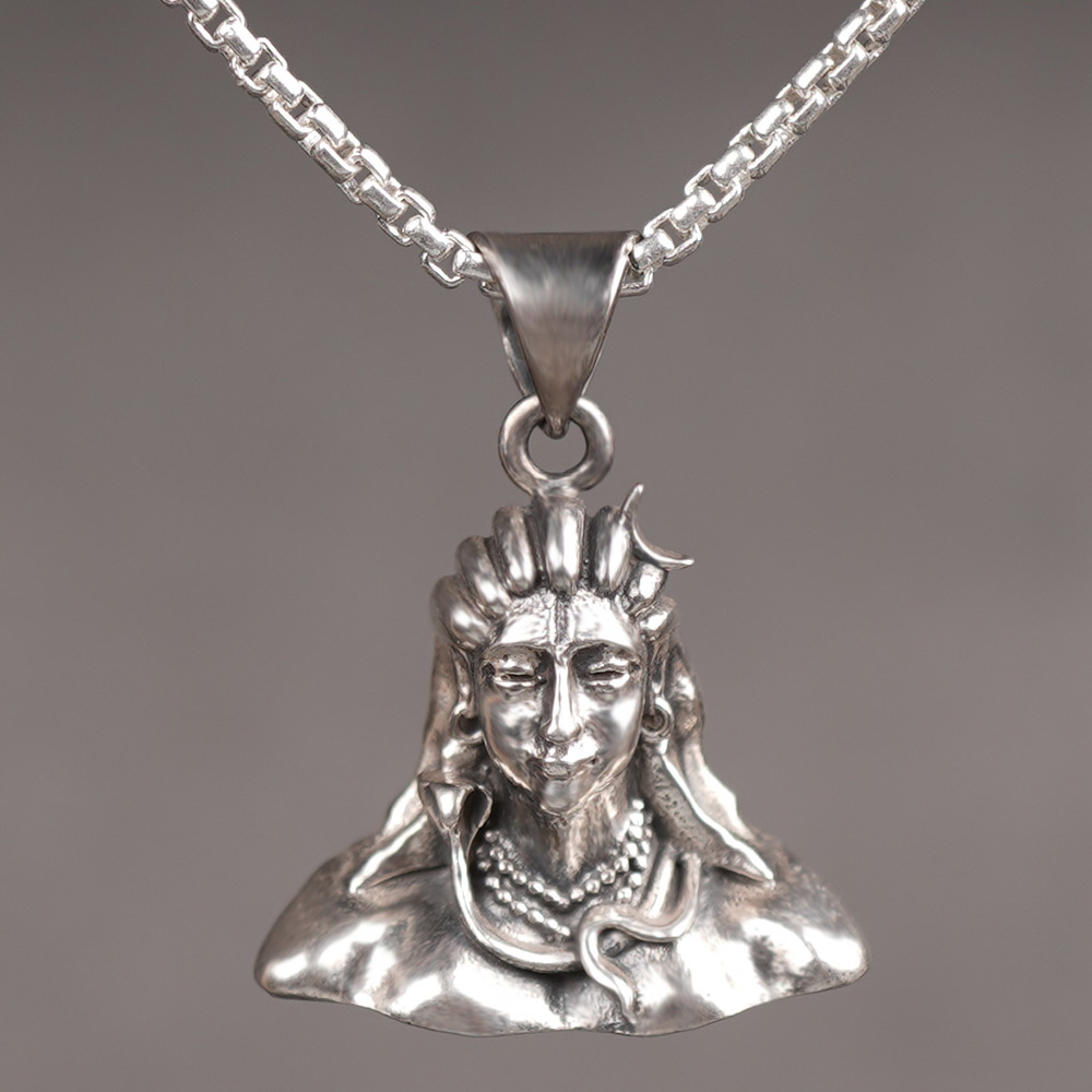 This 925 sterling silver pendant features the Adiyogi form of Lord Shiva, symbolizing the first yogi and the source of all yogic traditions. The detailed craftsmanship highlights Shiva’s serene expression, matted locks, crescent moon, and snake, representing his ascetic and meditative nature.