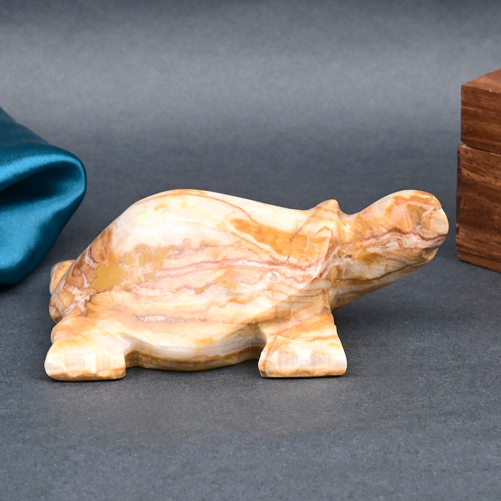 This Kurma (tortoise avatar of Lord Vishnu) made in natural white agate gemstone to promote harmony and a sense of security in home/office. Kurma, a manifestation of Lord Vishnu symbolizes grounding, steadiness, support, stability and longevity. Worshipping the Kurma form helps pacify the malefic of planet Saturn. Made in white Agate, it resonates calming energies to dispel stress, anxiety and frustration and brings mental balance and stability. It promotes positivity and strength to tackle the hard situation and brings fortune and success in business.