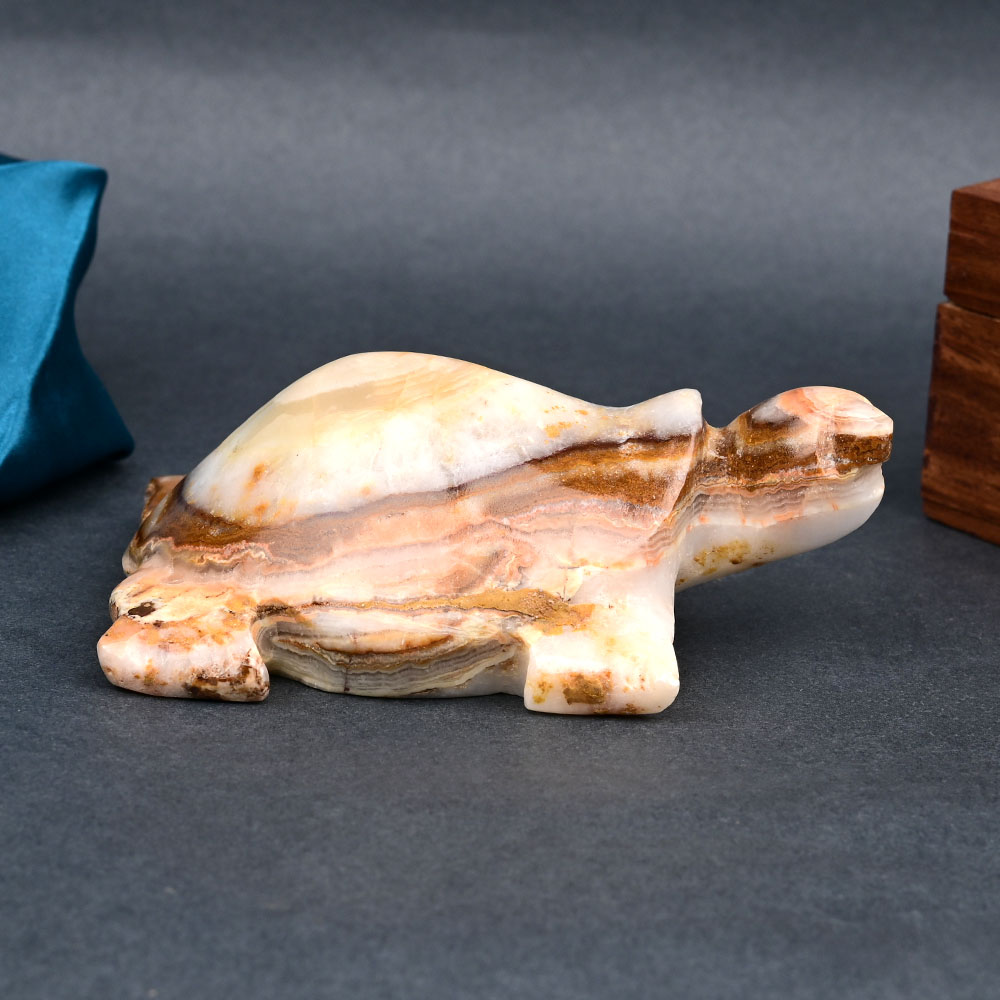 This Kurma (Tortoise avatar of Lord Vishnu) made in natural white agate gemstone to promote harmony and a sense of security in home/office. Kurma, a manifestation of Lord Vishnu symbolizes grounding, steadiness, support, stability and longevity. Worshipping the Kurma form helps pacify the malefic of planet Saturn. Made in white Agate, it resonates calming energies to dispel stress, anxiety and frustration and brings mental balance and stability. It promotes positivity and strength to tackle the hard situation and brings fortune and success in business.