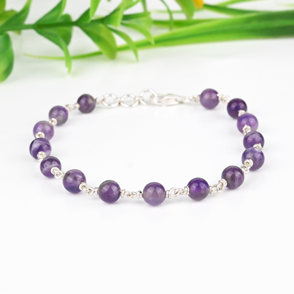 This refined bracelet features polished amethyst beads strung on durable 925 silver wire. Secured with a sturdy lobster clasp, it combines elegance and functionality, making it a versatile accessory for both everyday wear and special occasions. Benefits: Supports the crown chakra, fostering spiritual growth, clarity, and awareness. Enhances mental clarity and focus, aiding in decision-making and concentration. Provides calming energy, ideal for meditation and mindfulness practices.