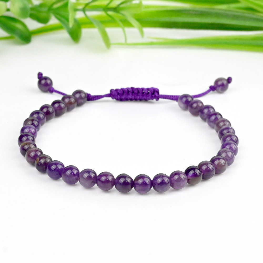 This bracelet features polished amethyst beads strung on a durable thread, offering a natural and elegant look. The adjustable thread ends ensure a secure and comfortable fit, making it perfect for everyday wear or special occasions. Benefits: Removes negativity and fosters optimism. Enhances spiritual consciousness and awareness. Brings clarity of thoughts and emotional balance.
