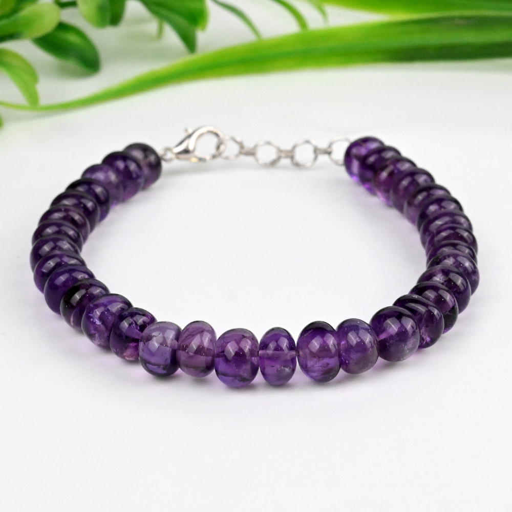 This bracelet is crafted with smooth, elliptical-shaped Amethyst beads in a deep and lustrous purple hue. The elongated shape of the beads adds a unique and elegant touch to the design, making it stand out from traditional round bead bracelets. Each bead is polished to perfection, enhancing its natural clarity and shine. The bracelet is secured with a durable metal clasp, ensuring comfort and ease of wear. Its versatile design makes it suitable for daily use or special occasions. Benefits: Promotes emotional balance and reduces stress and anxiety. Enhances spiritual awareness and intuition, supporting meditation practices. Protects against negative energy and fosters inner peace. Encourages clarity of thought and aids in decision-making.