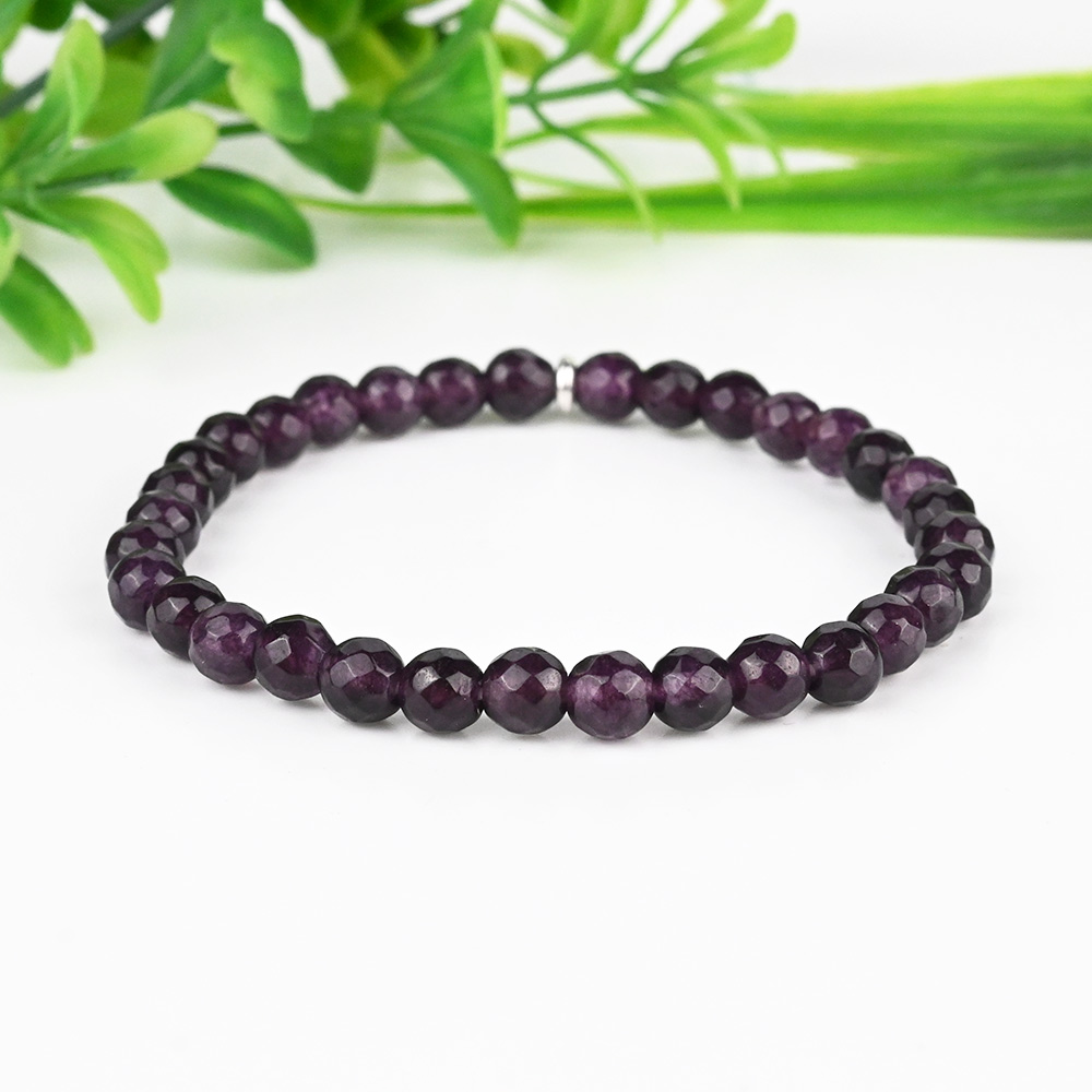 This Amethyst Faceted Beads Bracelet is crafted with smooth, faceted amethyst beads in a rich, deep purple hue. The beads feature flat, angled surfaces that add a refined texture to the bracelet. Strung on a durable elastic band, the bracelet ensures a comfortable and secure fit, with no gaps between the beads for a seamless appearance. The bold color and faceted texture make this bracelet a versatile and elegant accessory for any occasion, blending style with the calming energy of amethyst. Benefits: Removes negativity and fosters optimism. Enhances spiritual consciousness and awareness. Brings clarity of thoughts and emotional balance.