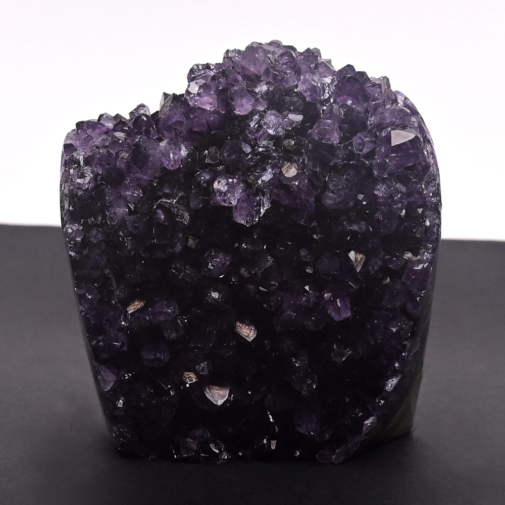 This Amethyst Geode is a naturally formed crystal cluster, displaying stunning shades of deep to light purple with sparkling terminations. The geode is cut open to reveal the inner crystalline world, with its vibrant amethyst points glistening beautifully under light. The contrast of its raw rocky exterior with the radiant, glittering crystals inside makes it both a decorative masterpiece and a powerful energy stone. Perfect as a centrepiece for homes, offices, or meditation spaces, the amethyst geode combines natural elegance with a mystical charm.