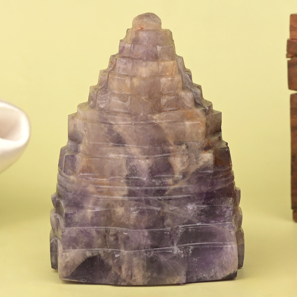 This auspicious shree yantra is carved in 100% natural amethyst. Amethyst shree yantra brings harmony and positivity in the place where it is kept.