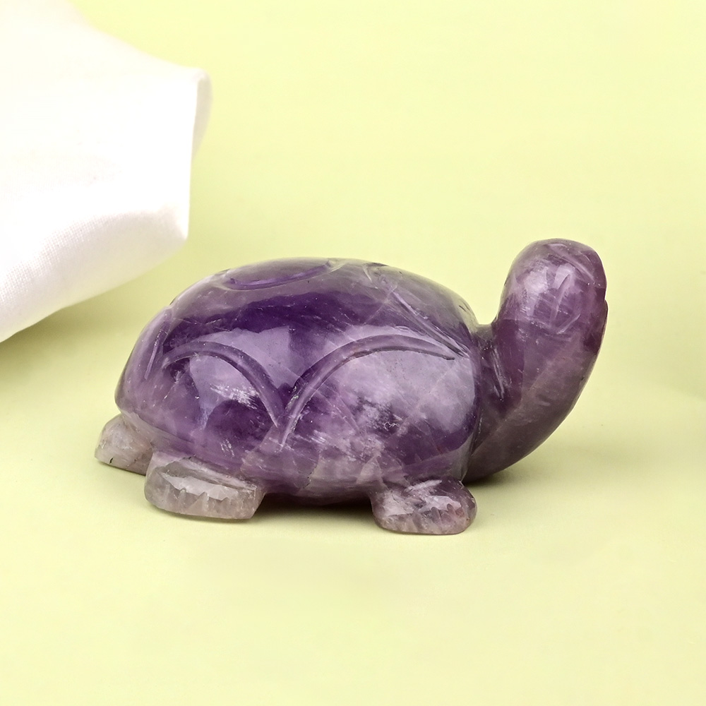 This Kurma is crafted finely from a single stone of natural Amethyst gemstone to confer stability and fortune. The Kurma avatar of Lord Vishnu is one of the most significant chapters of Samudra Manthan. Kurma when placed facing the West direction in home or office is believed to offer longevity, support, and stability all aspects of life. Made in Amethyst, it promotes additional benefits of luck, positivity, contentment and absorbs negative energy in the aura to promote positivity.