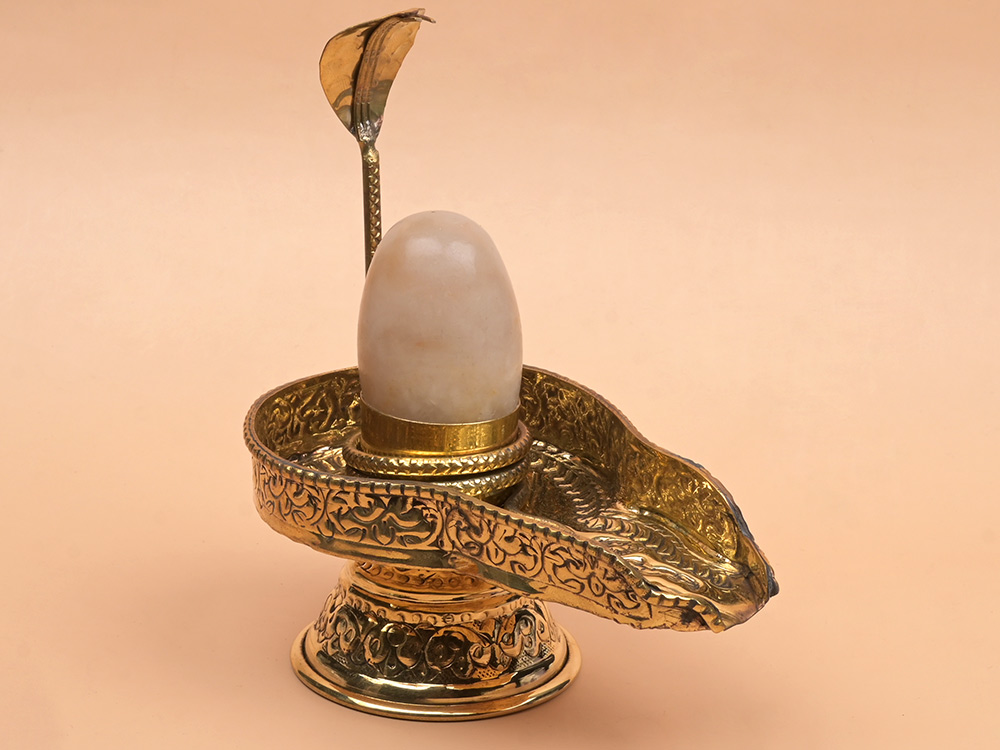 The Banalinga is renowned as the pinnacle of Shiva Lingas because it satisfies both types of desires: material bliss and spiritual redemption. Holy and profound for believers the Banalingam is enhanced with the ornately carved brass Yoni base and snake hood.