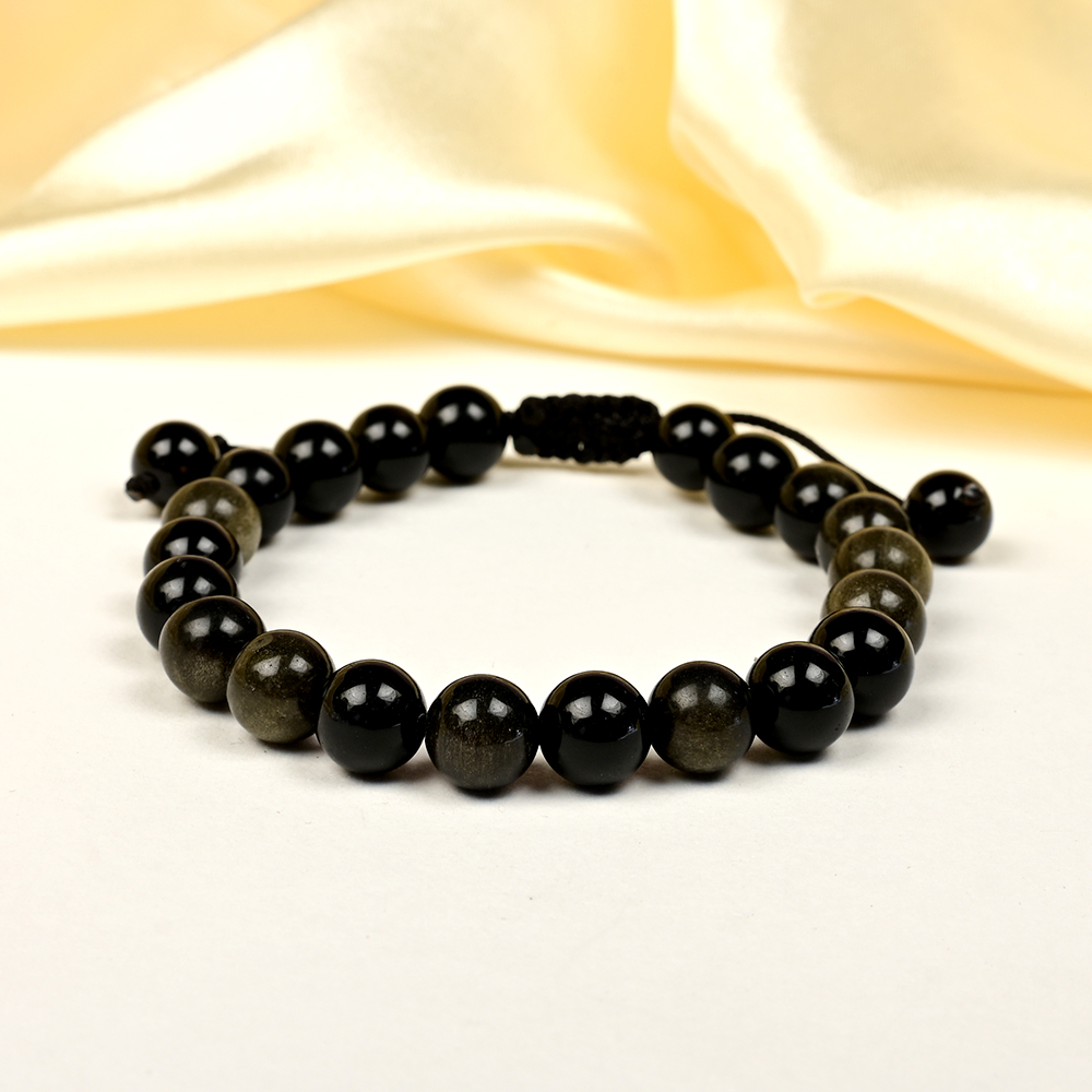 This Black Obsidian Adjustable Bracelet is a powerful blend of elegance and protection, handcrafted with smooth, polished Black Obsidian beads. Strung on a durable adjustable cord, it ensures a secure and comfortable fit for daily wear while allowing flexibility in size. The beads exhibit a deep, glossy black hue with subtle natural variations, giving the bracelet a bold and sophisticated appeal. Black Obsidian is a revered stone known for its protective and grounding energies. It acts as a shield against negativity, psychic attacks, and emotional blockages, while promoting clarity, self-control, and inner strength.