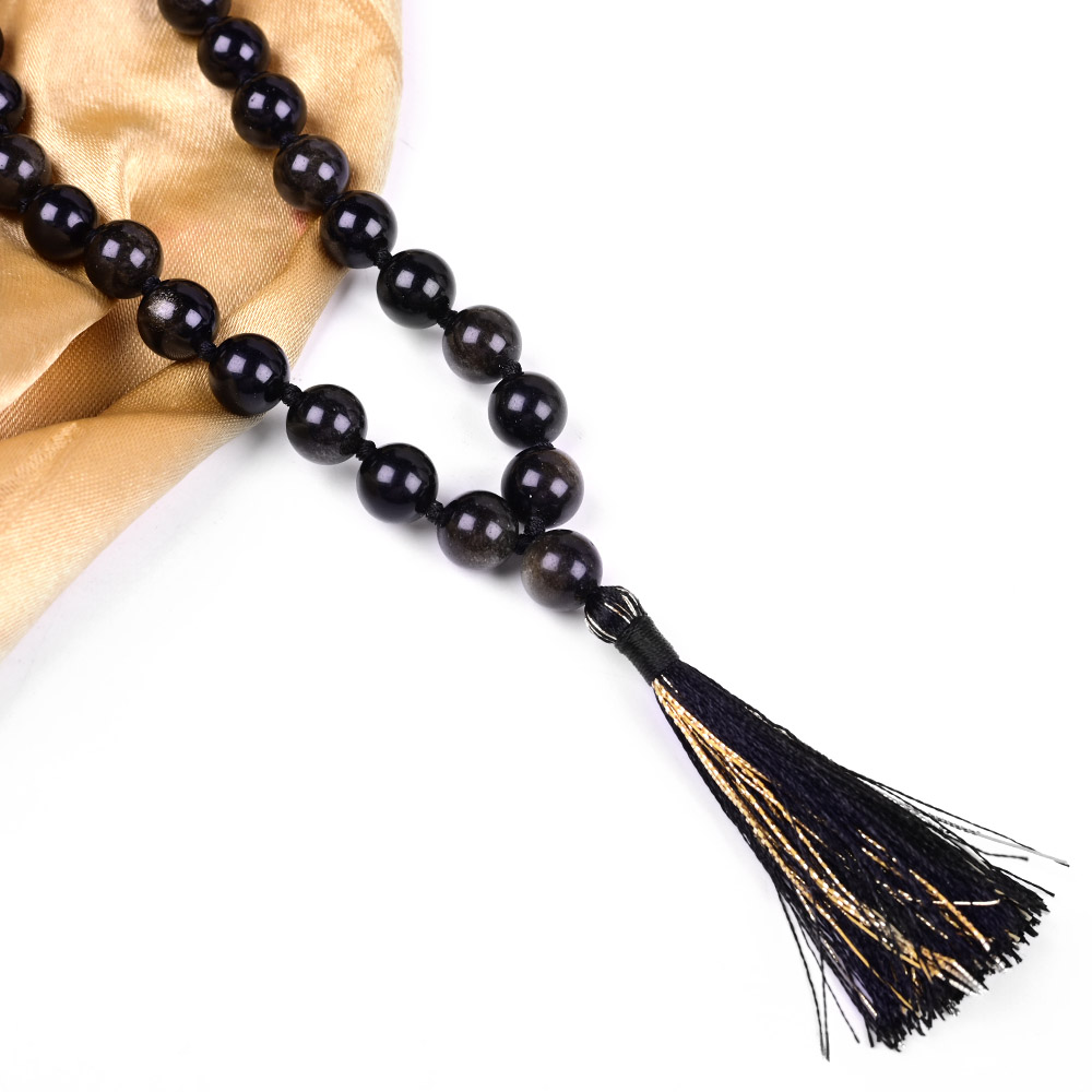 This powerful mala is crafted from premium grade Black Obsidian round beads, carefully polished to a deep reflective finish. The beads are evenly shaped and securely strung, allowing smooth movement and durability during regular spiritual practice. Black Obsidian provides strong protective and grounding energy, supporting focused meditation and mental stability. Regular use encourages emotional resilience, clarity of thought, and a steady sense of inner strength.