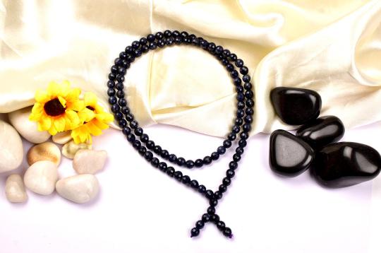 Mala made using faceted natural blue Sapphire beads makes a stylish healing accessory that goes well with any ensemble, be it casuals or semi-casuals. Blue Sapphire is a stone of intuition and brings success and fortune. It is associated with the Third-Eye (Ajna) Chakra and helps improve judgment and discernment and elevates the consciousness of the wearer. Available in both blue silk and twin-beads tassels, the mala is also helpful in balancing the effects of planet Saturn.
