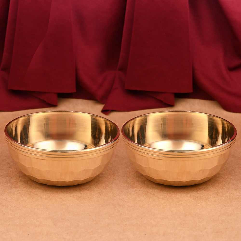 The charming offering bowls are crafted with elegance in premium quality brass by skilled artisans. The flawlessly shining faceted pattern bowls with smooth edges is ideal to keep Tilak, Prasad, Akshat Rice or other holy offerings for puja.