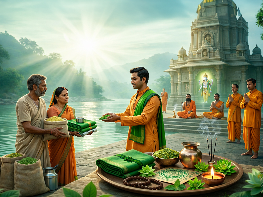 Budh Daan enhances clarity, expression, and intellectual growth.